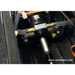 Il gruppo propulsore è costituito da un motore brushless raffreddato ad acqua e un controller, così come il servo del timone e il sistema RC da 2,4 GHz sono montati nel modello pronto per la navigazione.