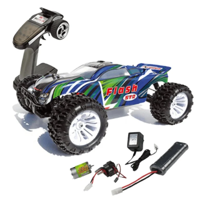● MHDPRO Flash: MHDPRO Flash BX è un buggy RTR. È dotato di un motore a combustione interna, 4WD, un controller radio a 2,4 GHz e una batteria Li-Po inclusa 3,7v 800 mAh.