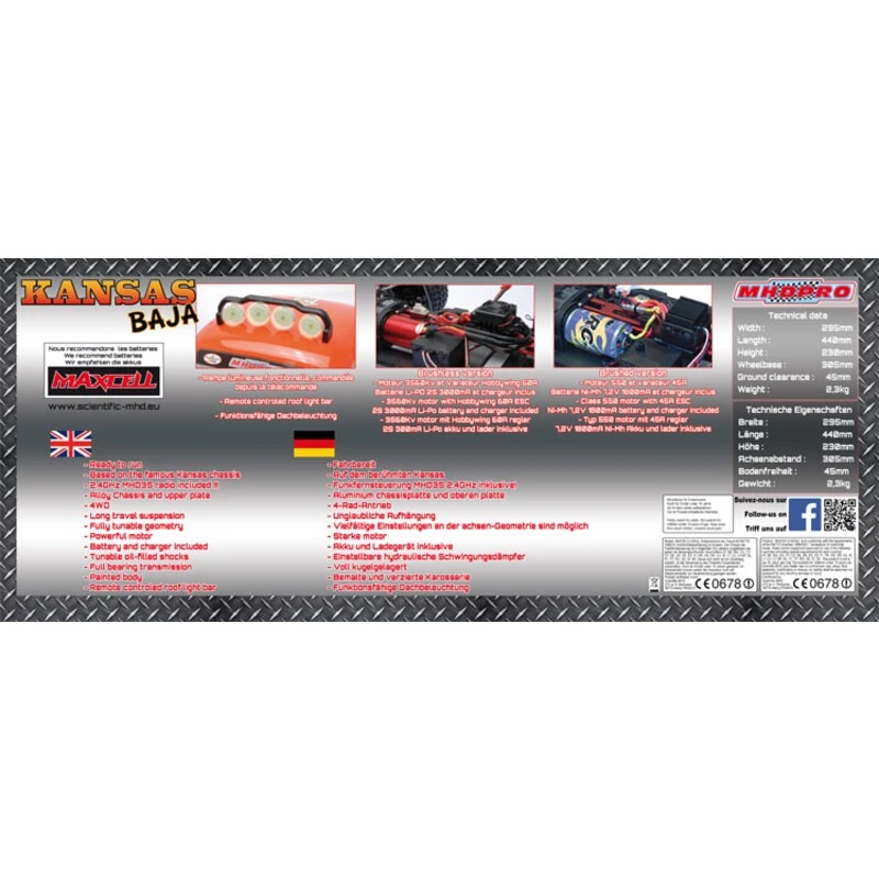Il nuovo buggy pronto per l’uso Kansas BAJA 1/10 è l’ultimo passeggino MHDPRO 2016 per il divertimento.