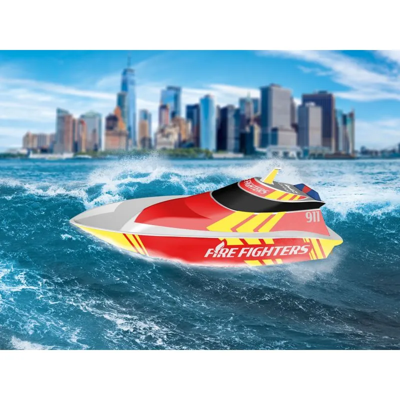 Barca RC a 3 canali, 2,4 GHz. Con cannone ad acqua come i vigili del fuoco, a pompa 15 minuti di gioco con la sua batteria al Litio. Dispositivo di sicurezza contro la fuoriuscita dall’acqua. Scomparto impermeabile per preservare l’elettronica. Radiocomando a 2,4 Ghz per lunghe distanze e per riprodurre più +F1600 senza interferenze. Design fuoribordo, 47 cm! Avviso di batteria scarica. Possibilità di raddrizzamento automatico in caso di capovolgimento. Dall’età di 8 anni. Richiede 2 batterie AA da 1,5 V, non incluse