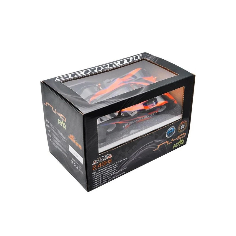 La Serpent S240 Ready To Race 1/24 viene assemblata e pronta a correre! Basta aggiungere un paio di batterie Arrowmax #AM700990! Questo 1/24 ha un telaio in carbonio e molte parti in alluminio anodizzato.